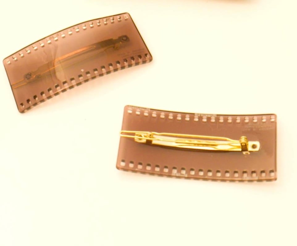 まるで映画のフィルムのようなセピア色のアクリルで、Andorinhaの得意とするアクリルの曲げ加工で製作したアクセサリーです。