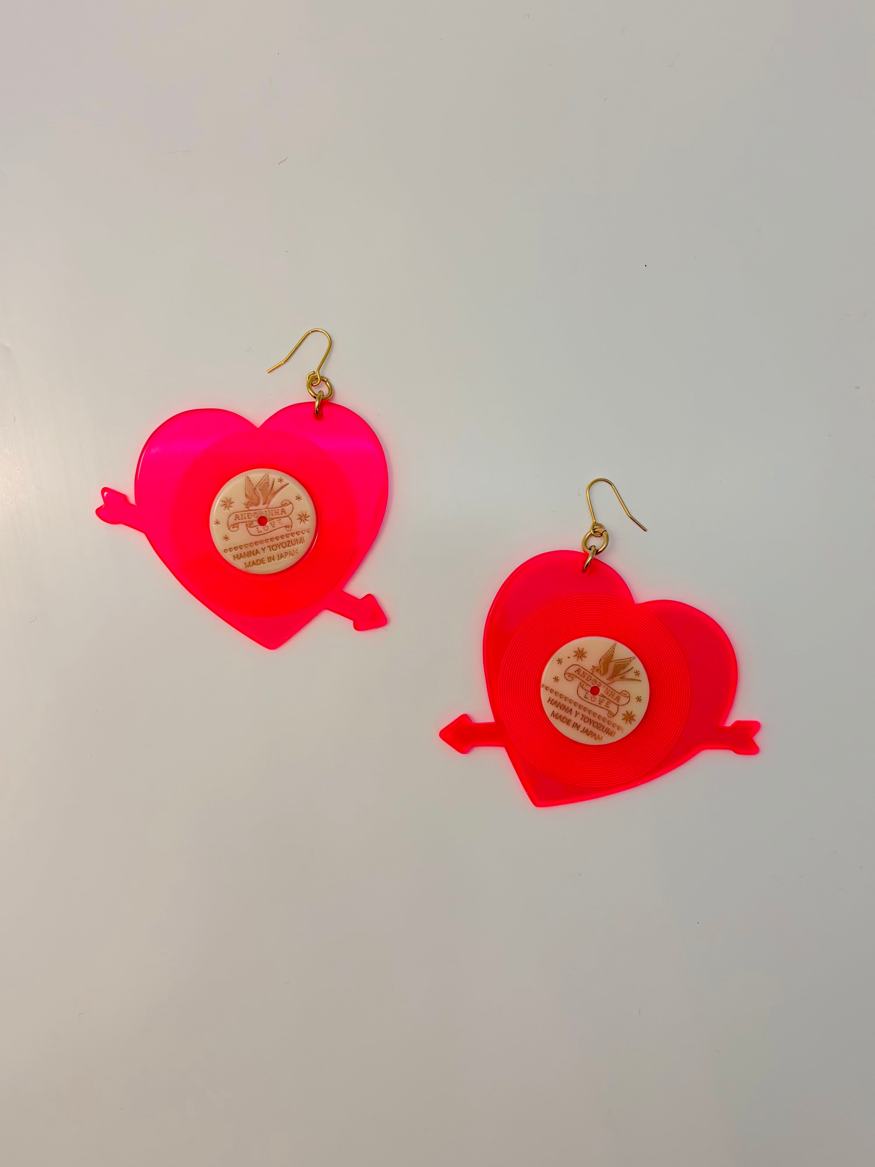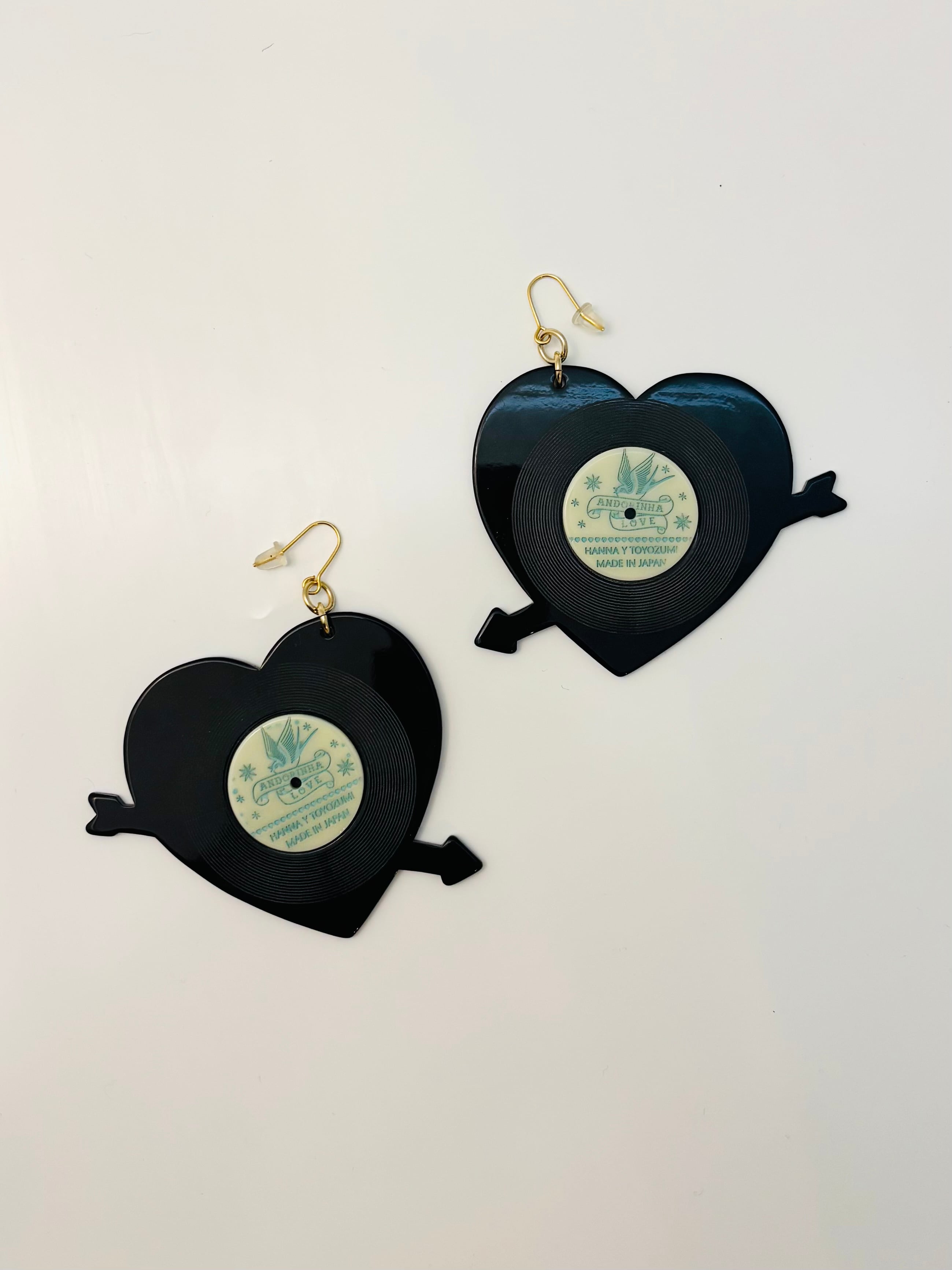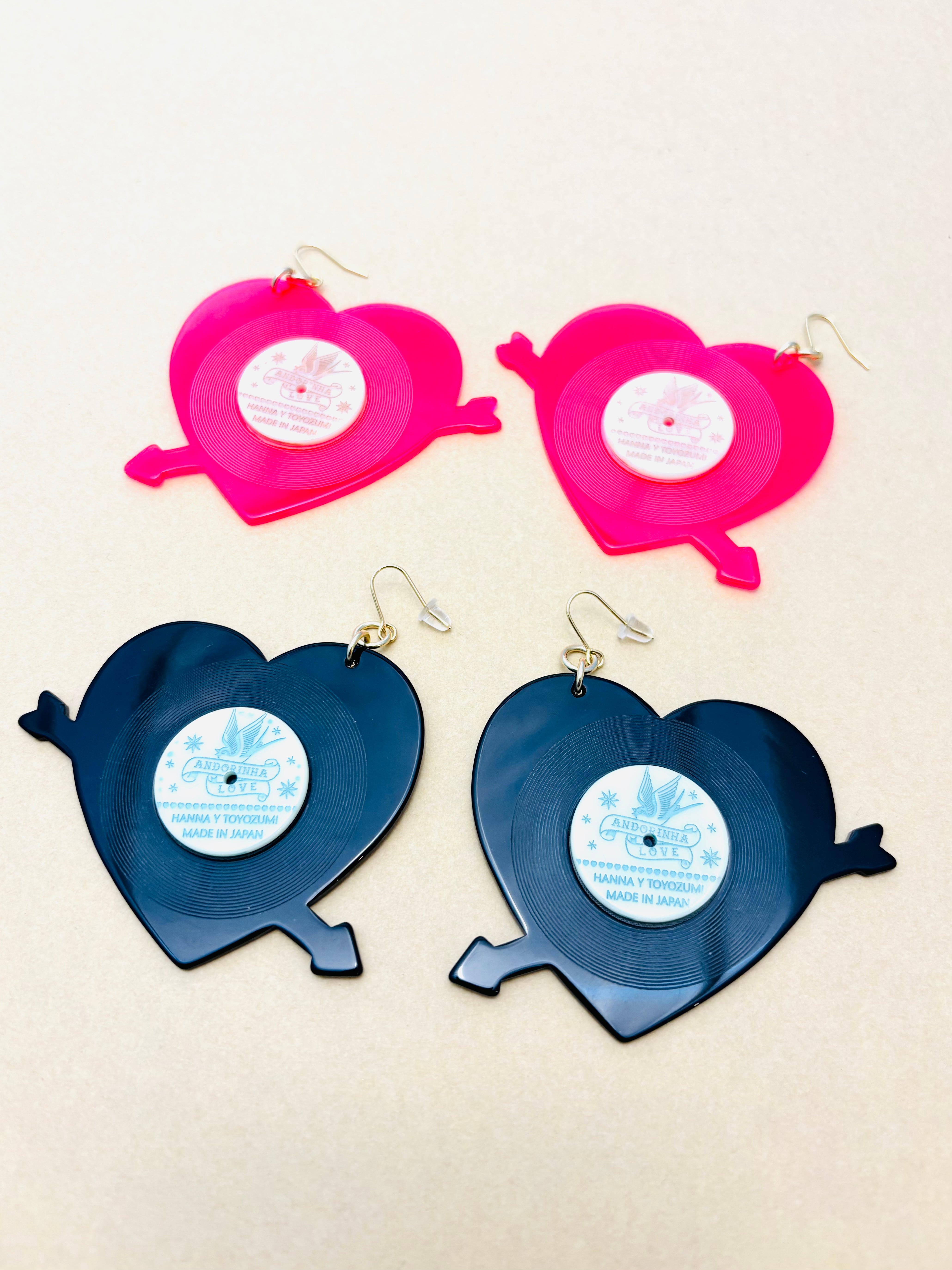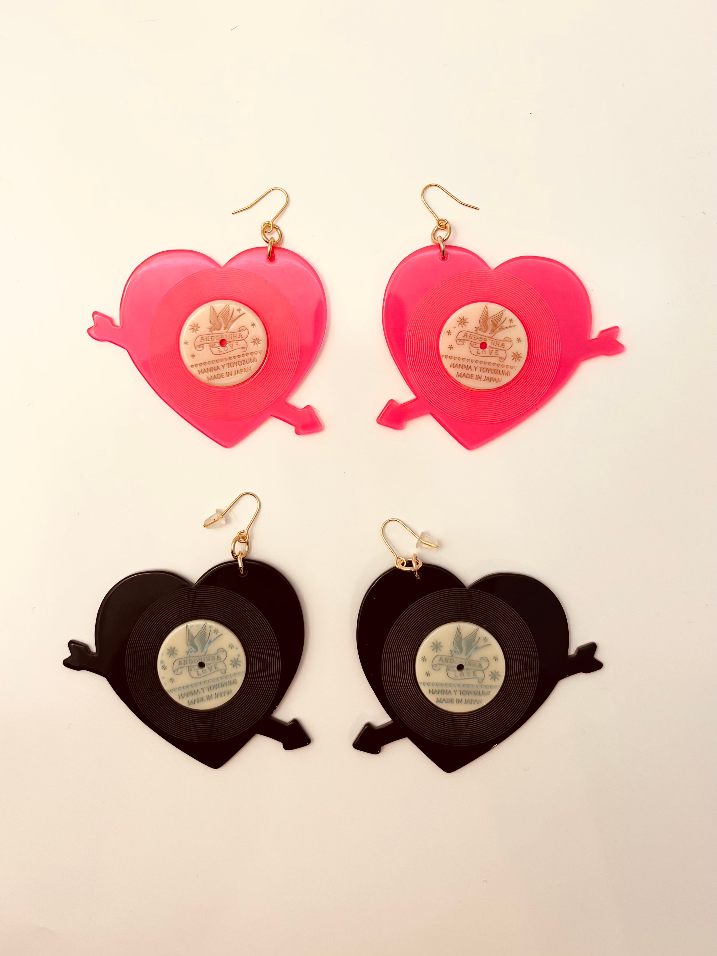 かわいいハートのレコードデザインのイヤリング・ピアスです。