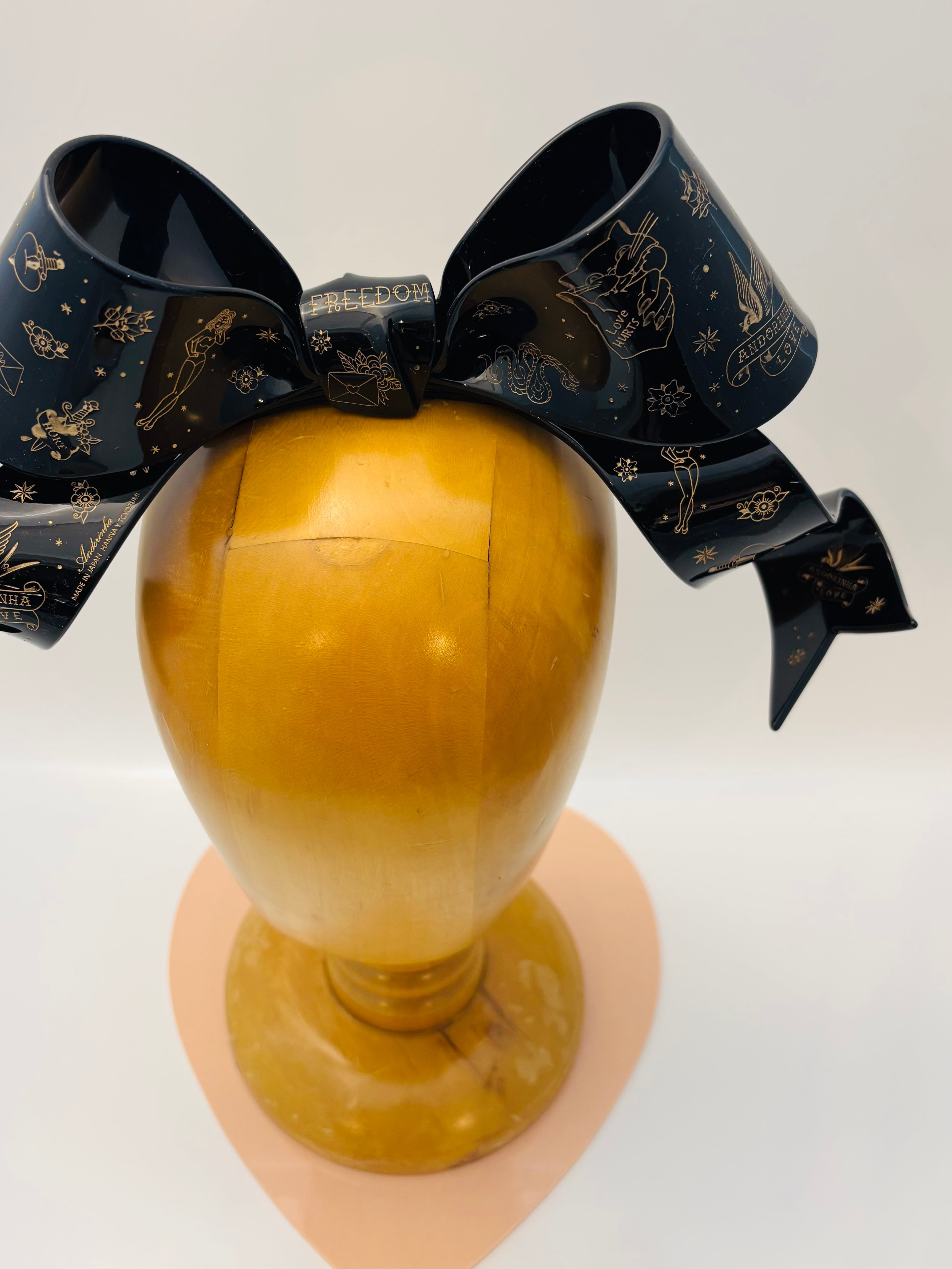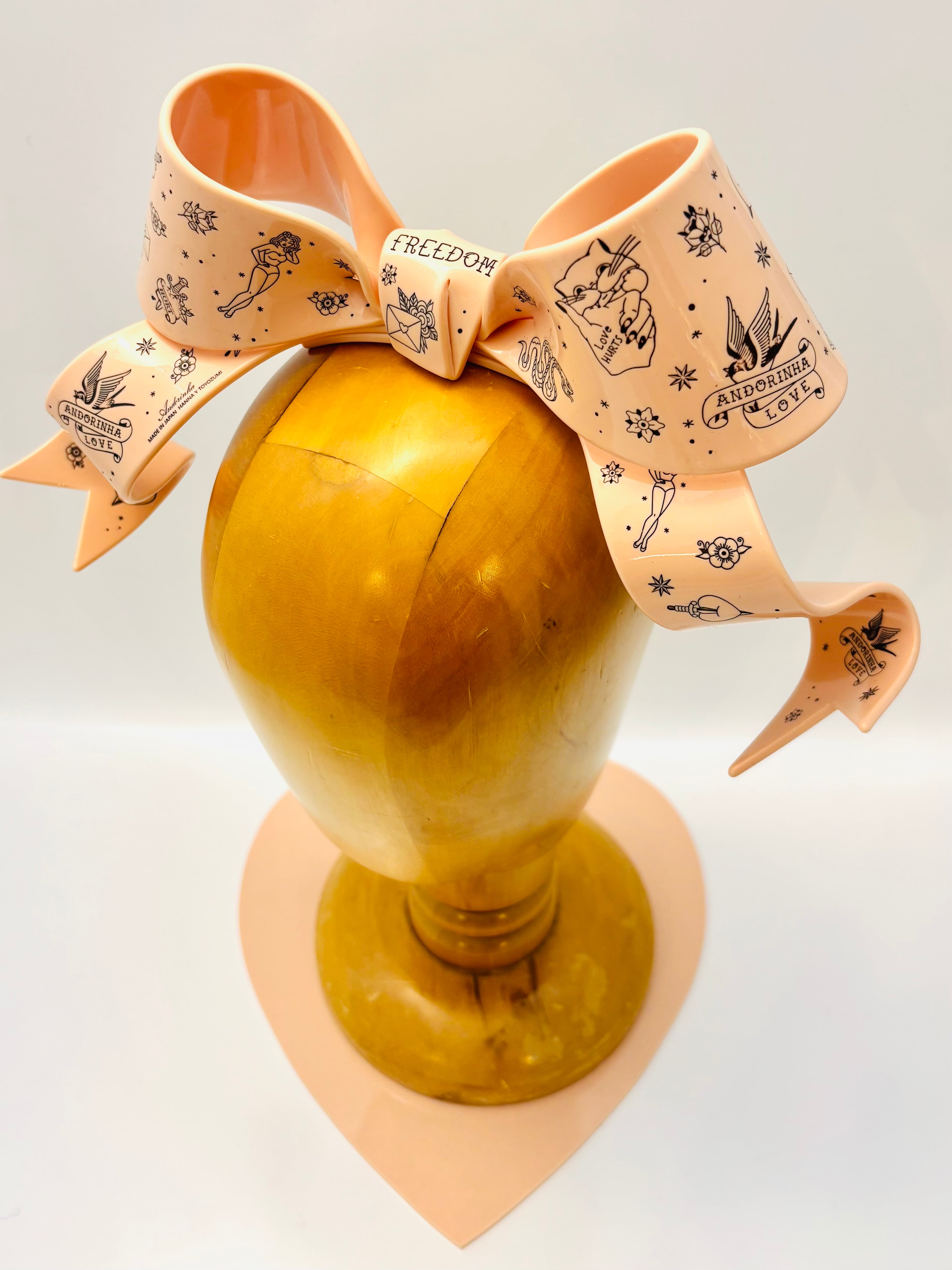 アンドリーニャのビッグリボンバレッタに、TATOOの総柄バージョンが登場しました!柄は彫刻で、色を塗って柄が表現されています。