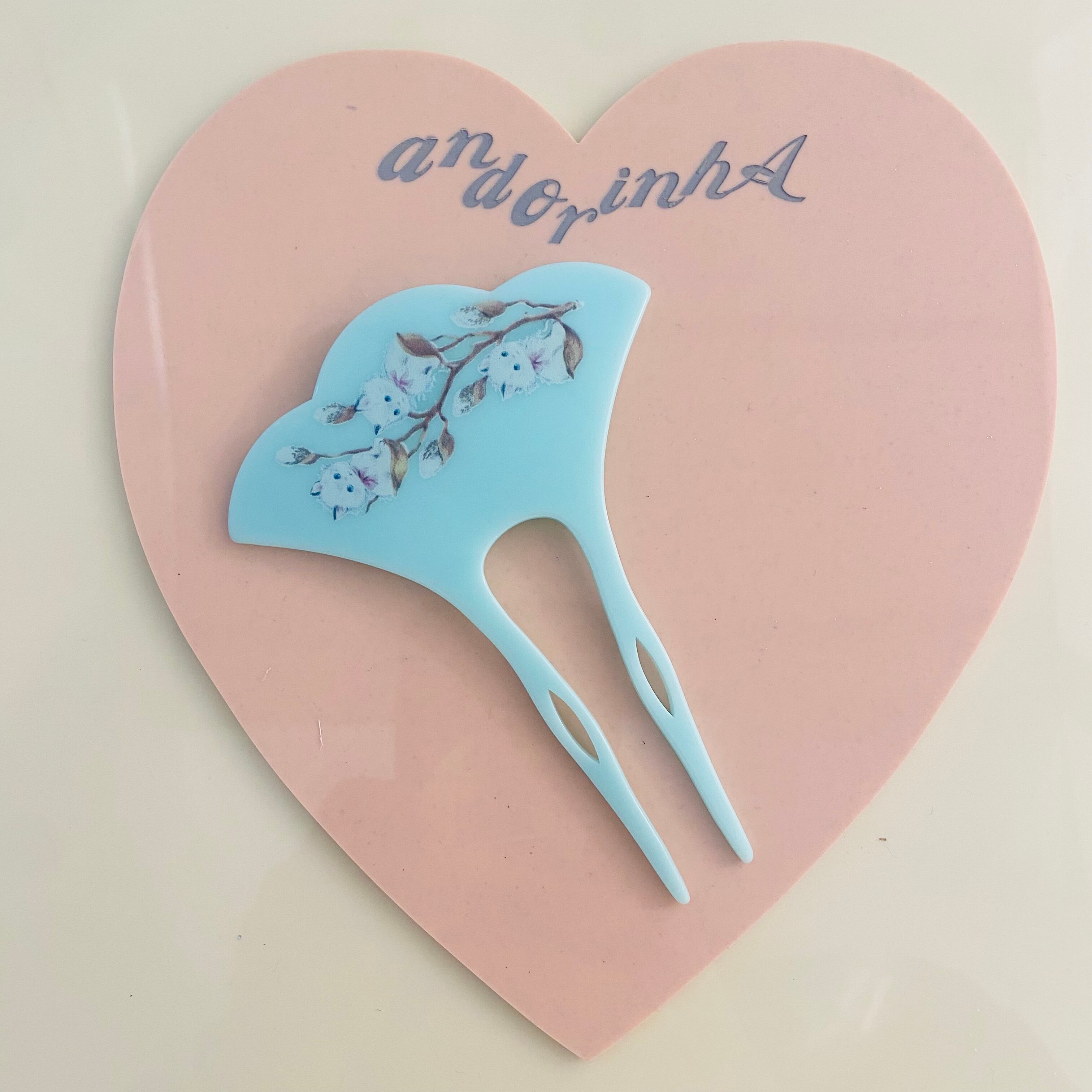 レトロ色のイチョウかんざしに猫ちゃんのプリントが入ったかんざしです。